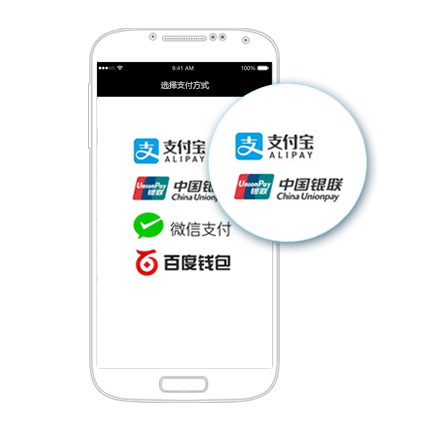 祥,为iOS/Android原生/H5 App提供支付解决方案:支持微信支付、支付宝支付、银联手机支付、百度钱包等。